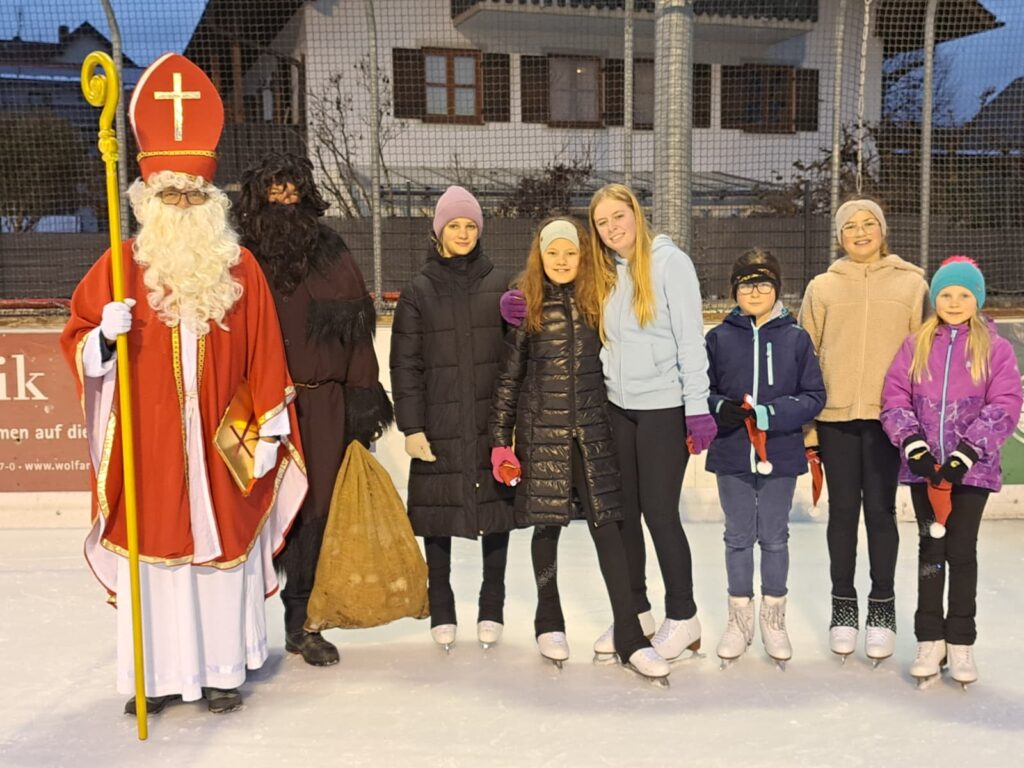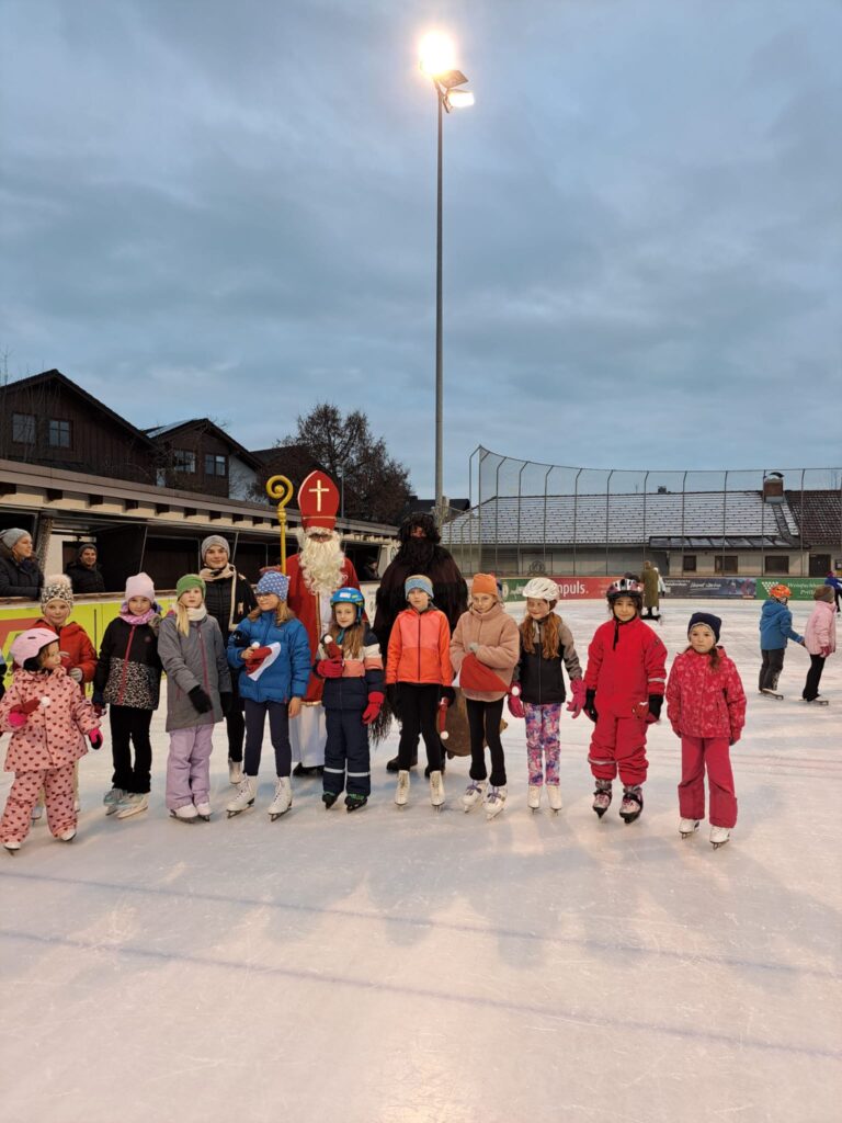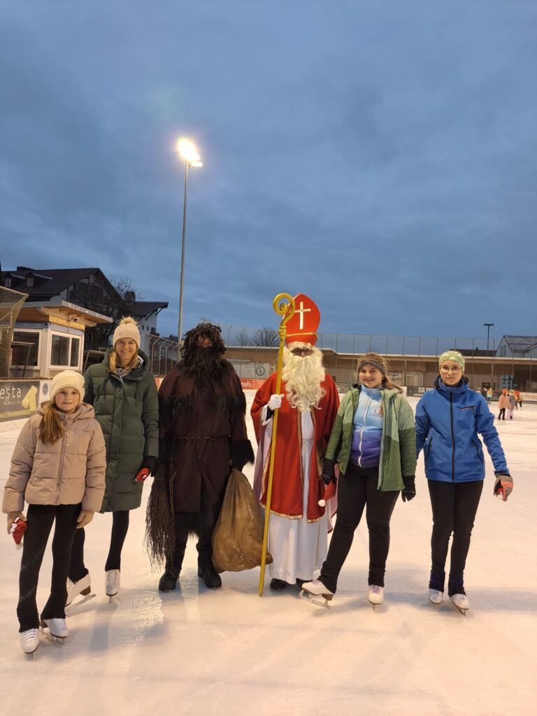Was wäre der Advent ohne den Nikolaus! Am Freitag den 05.12.2025 ist er zu unseren kleinen und großen Läufern aufs Eis gekommen und hat ihnen Weisheiten aus seinem goldenen Buch vorgelesen. Den Krampus und kleine Geschenke hatte er natürlich auch dabei. So haben die Eisflöhe, die Eismäuse, die Schneeflocken, die Eiskristalle, die Goldene Kufe, die Freiläufer, die Figurenläufer, die Sichtungsgruppe und natürlich auch unsere Kür- und Klassenläufer dem Nikolaus etwas vorgeführt. Zum Glück ist unser Verein jetzt noch vollständig, und der Krampus musste niemanden mitnehmen 😉. Einen schönen Advent euch allen 🎄