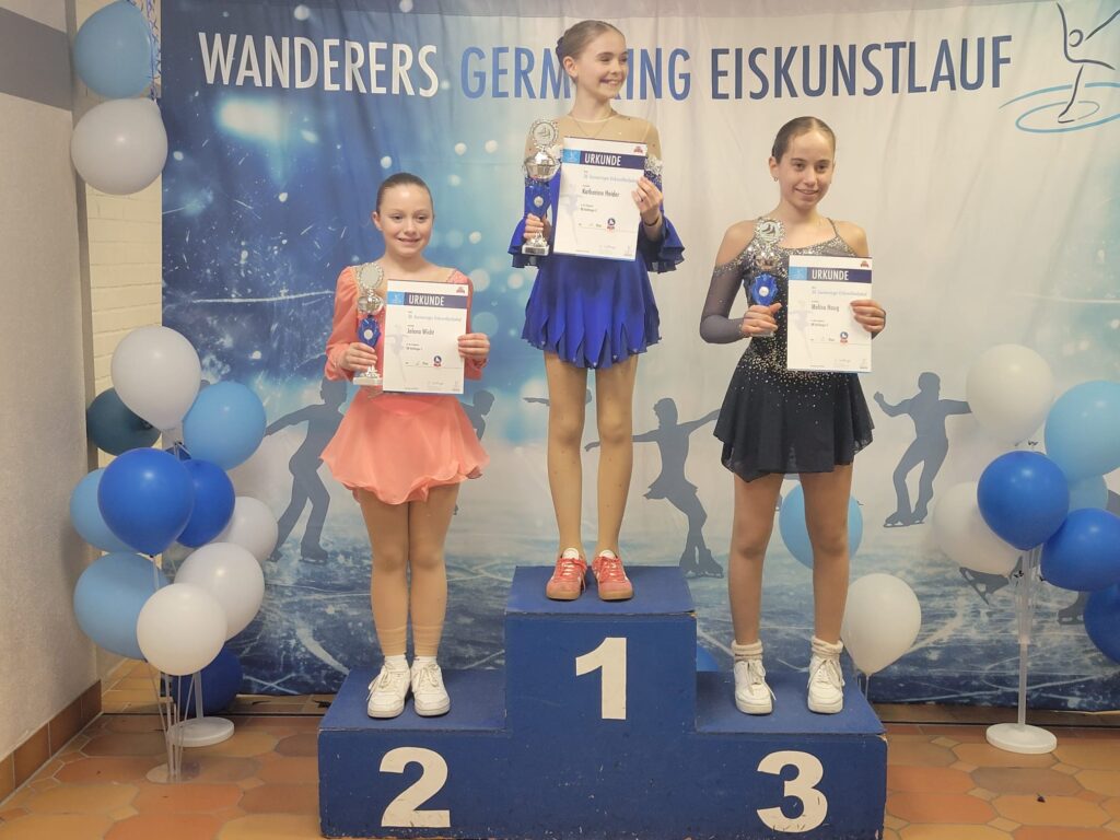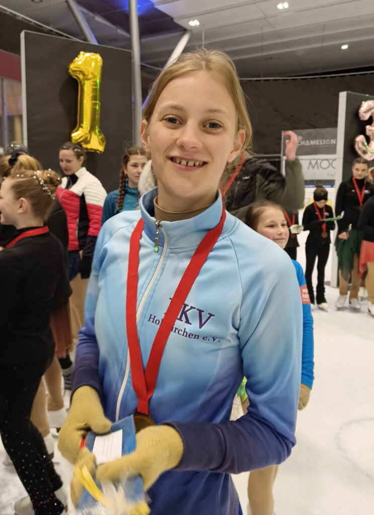 Und hier noch die Einzelergebnisse: Vila Elshani, Freiläufer B, 1. Platz; Valentin Bastian, Kunstläufer, 3. Platz; Felicitas Wicht, Nachwuchs C, 3. Platz; Eira Aldenhoven, Nachwuchs C, 4. Platz, Melina Reinshagen, Young Adult Bronze, 1. Platz; Aliena Esch, Young Adult Silber, 1. Platz; Kathi Lichter, Young Adult Gold, 4. Platz; Young Adult Gold, 2. Platz; Miriam Strobl, Young Adult Gold, 3. Platz.