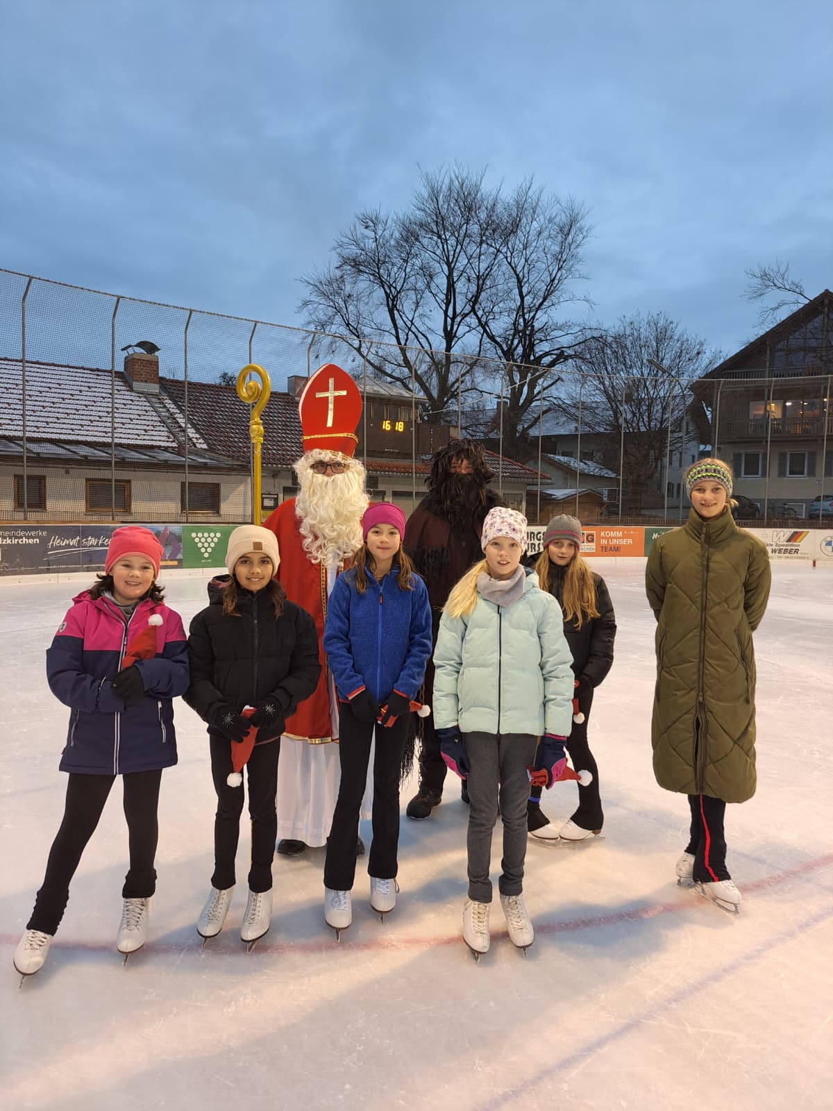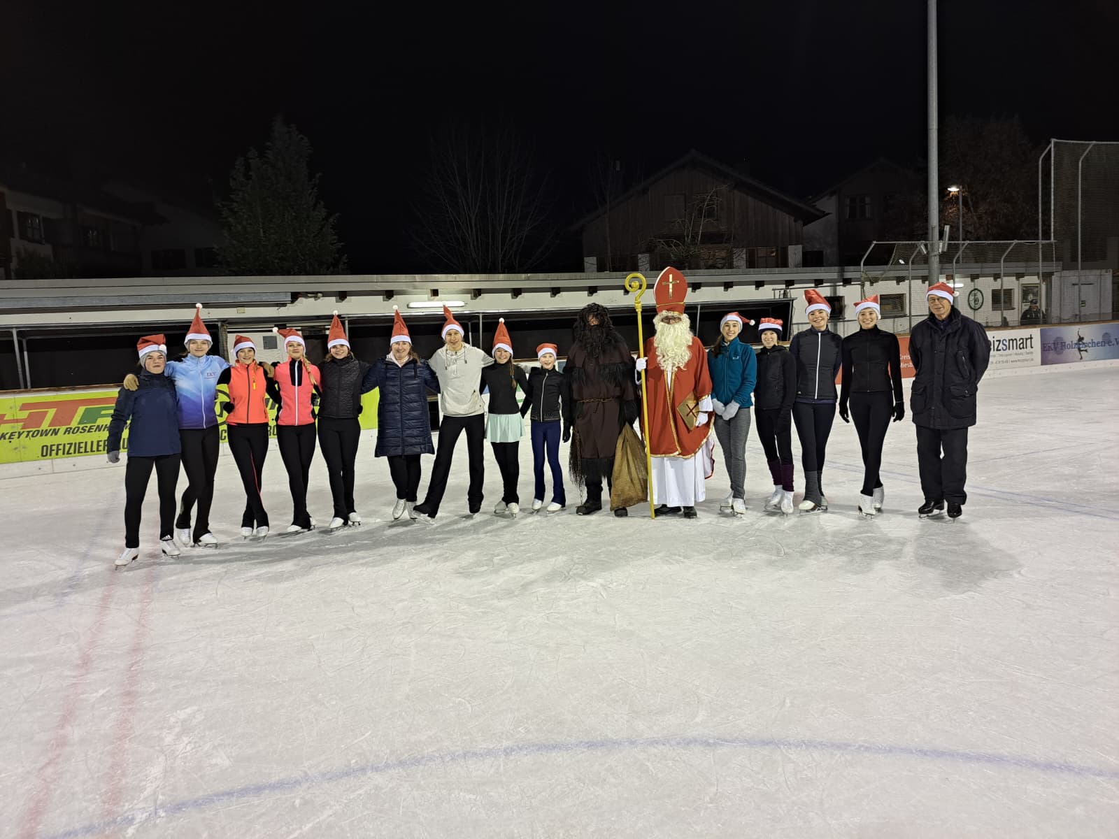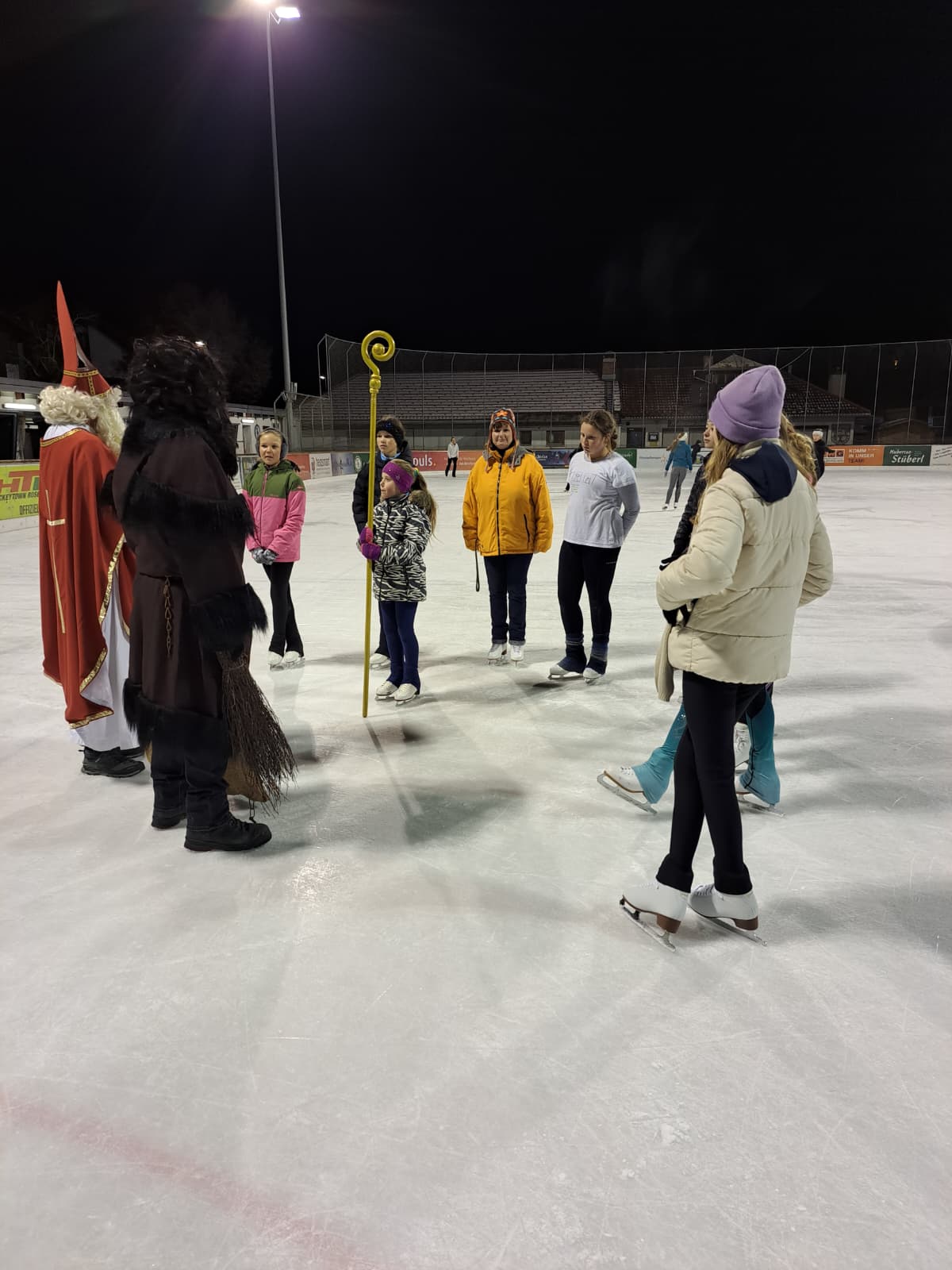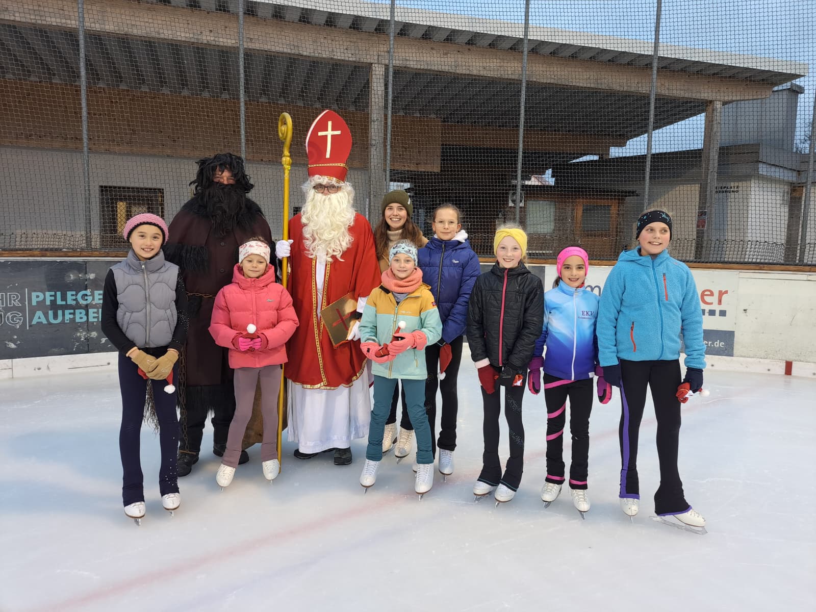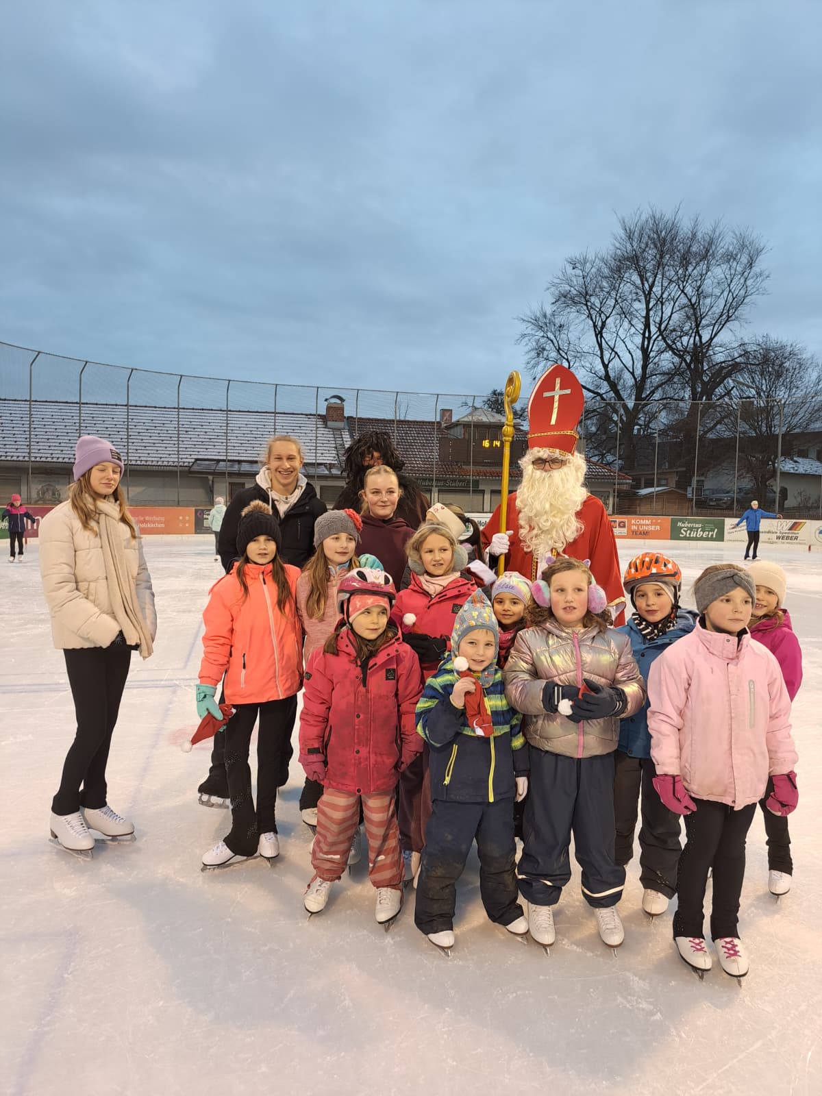 Was wäre der Advent ohne den Nikolaus! Am Freitag den 05.12.2025 ist er zu unseren kleinen und großen Läufern aufs Eis gekommen und hat ihnen Weisheiten aus seinem goldenen Buch vorgelesen. Den Krampus und kleine Geschenke hatte er natürlich auch dabei. So haben die Eisflöhe, die Eismäuse, die Schneeflocken, die Eiskristalle, die Goldene Kufe, die Freiläufer, die Figurenläufer, die Sichtungsgruppe und natürlich auch unsere Kür- und Klassenläufer dem Nikolaus etwas vorgeführt. Zum Glück ist unser Verein jetzt noch vollständig, und der Krampus musste niemanden mitnehmen 😉. Einen schönen Advent euch allen 🎄