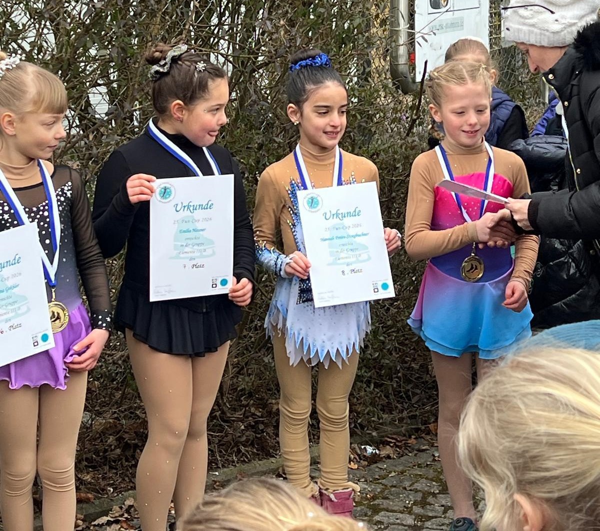 Ein Wettkampf unter freiem Himmel – fast wie zu Hause 😛. Im Ottobrunn am Valentinstag 2026 waren Nele Fischhaber (Elemente IVA, 1. Platz), Korbinian Singer (Nachwuchs B, 1. Platz), Neka Kretschmer (Freiläufer B, 4. Platz), Valentina Bastian (Figurenläufer B, 5. Platz), Viola Elshani (Freiläufer A, 8. Platz) und Hannah Freire-Stoegbuchner (Elemente IIIB, 8. Platz) für den EKV Holzkirchen am Start.